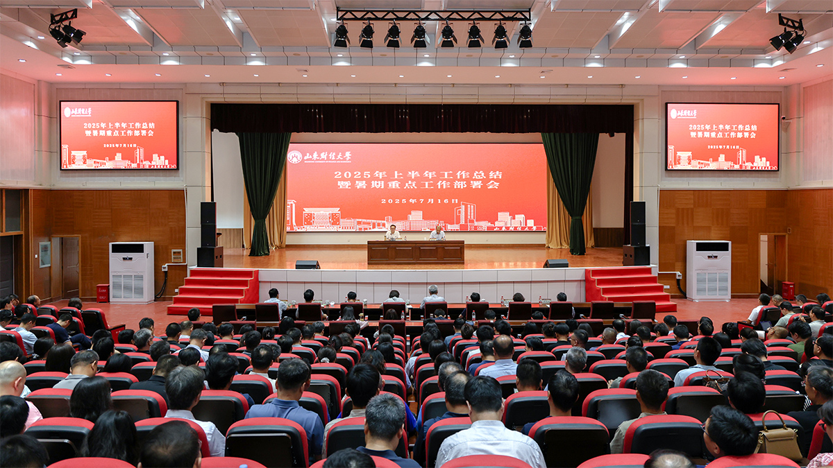 洪俊杰回顾总结了学校2025年上半年工作。他说,上半年,我们遵循学校第二次党代会确定的“一一三九”发展思路,围绕人才培养、科学研究、社会服务、国际交流等重点工作,持续深化改革创新,着力推进学校事业高质量发展,各项工作取得显著进展。一是接受省委巡视组巡视,党的建设全面加强。圆满完成省委第六巡视组现场巡视任务。成立深入贯彻中央八项规定精神学习教育专班,通过多样化学习方式筑牢思想根基。干部队伍建设持续加强,完成中层领导班子考核调整,举办年轻干部纪律作风培训班,为发展提供坚强组织保障;二是综合改革持续深化,高质量发展进一步提速。学校完成2024年中层单位考核,制定2025年任务书,制定“一校一书”“一院一书”改革指标。“十五五”规划编修有序推进,第三次教代会和第二次工代会成功召开,独立学院合作办学协议制定并稳步落实。三是立德树人目标更加坚定,培养质量大幅提升。《“421”行动计划》入选省教育综合改革和制度创新典型案例。AI-PAI新财经人才培养实施方案发布。“数字孔子”走进课堂。专业结构持续优化。研究生培养方案同步完善。获批省级人工智能赋能重点领域教学改革项目3项,山东省研究生教育教学资源项目67项,获山东省高校教师教学创新大赛一等奖2项,获山东省第十二届高校青年教师教学比赛一等奖1项,获第十九届“挑战杯”山东省大学生课外学术科技作品竞赛特等奖4项。截至目前,毕业生总体去向落实率达86.33%,多项就业指标位居全国或全省前列;四是学科建设成效显著,科研实力持续增强。围绕2026年博士点申报,确定公共管理学、外国语言文学、区域国别学、智能科学与技术、系统科学5个一级学位授权点和会计专博进行重点培育。完成2020-2025年学位授权点周期性合格评估工作和2024年山东省“高水平学科”项目绩效评价工作。推动交叉学科建设。国家级、省级课题获批数量稳步增长,发表高水平论文220余篇,6项案例获教育部主题案例征集立项。多场高水平学术活动成功举办,学术氛围日益浓厚。五是社会服务能力大幅提升,服务地方成效显著。获批省决策咨询研究项目4项,省人民政府决策咨询研究重点课题2项。获山东省决策咨询优秀研究成果3项,山东省自然科学奖二等奖一项。积极推动“数据要素与智能治理”实验室申报教育部哲学社会科学实验室(第二批),推进“中国经济发展与安全实验室”筹建工作。六是人才队伍持续壮大,师资力量再上新台阶。引进德国国家科学与工程学院院士、欧洲科学院院士各1名,国家级领军人才4名、青年领军人才5名,全职引进骨干人才30名,招收博士后13名。3人入选 “中国高被引学者榜单”,1人获“全国先进工作者”称号,为发展注入强劲动力。七是国内合作遍地开花,国际化进程提档加速。与深圳市龙华区共建深圳研究院,与泰安、临沂、章丘等地方政府,与山东省应急管理厅、山东财金集团、中国移动济南分公司等企事业单位签署战略合作协议,与国家税务总局山东省税务局等达成合作意向,在高端智库建设、协同人才培养、发展校友经济等方面推动全面合作,持续打造服务经济社会发展的“财大品牌”。法国孔子学院交流成效显著。学校获评“2024年度山东省教育国际交流工作先进单位”和 “雅思示范高校”称号。英国48家集团、欧洲经济研究院等国(境)外来访团组近20个,国际影响力持续提升。八是文化建设繁荣发展,社会影响力显著增强。“文化建设年”活动蓬勃开展,校史溯源至1948年成立的山东省立商业专门学校,创校校长顾准先生铜像落成。文体活动丰富多彩,荣誉体系不断完善,主流媒体多次报道学校成就。九是办学条件不断优化,师生幸福感显著提升。收入分配管理、内控建设、校区改造、“暖心关爱工程”、资产盘活、后勤服务保障等工作有序推进,师生幸福感显著提升。