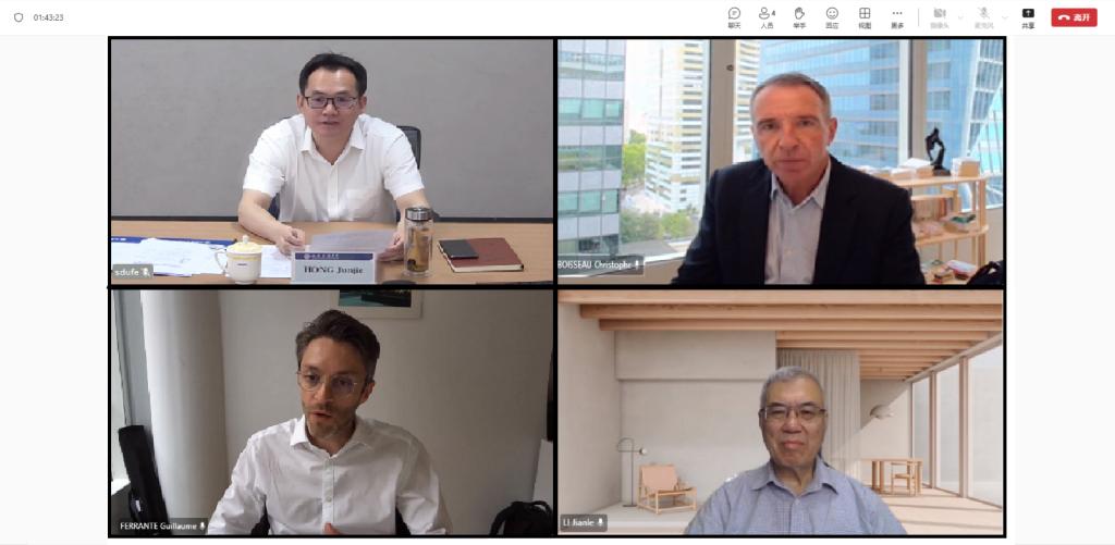 7月16日下午,我校与法国高等对外贸易学院召开孔子学院年度理事会会议。本次会议通过线上视频方式举行,学校校长、中方理事长洪俊杰,法国高等对外贸易学院校长、法方理事长克里斯托夫·布瓦索(Christophe Boisseau)出席会议并致辞。学校副校长、理事彭红枫,法方副校长、理事吉约姆·弗兰特(Guillaume Ferrante)及双方理事会成员出席会议。
