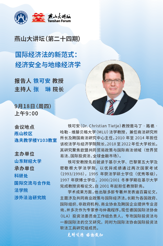 燕山大讲坛(第二十四期):国际经济法的新范式——经济安全与地缘政治学