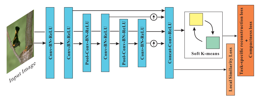 本文提出了一种带有晶格拓扑的超像素快速生成算法,该算法可以生成像原始像素一样具有晶格拓扑的超像素。为提高超像素分割精度,本文还提出了一个局部相似性损失函数来提高生成的晶格超像素的分割精度。整个算法都是在GPU上并行实现的,因此具有近于实时的分割速度。本文在三个数据集(即BSDS500、NYUv2和VOC)上进行了广泛的实验,大量实验结果表明,该方法具有良好的应用效果。