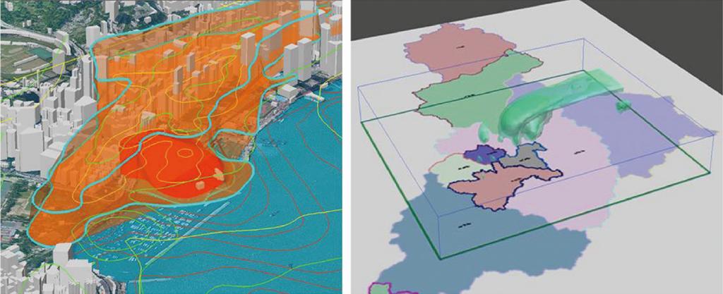 2)创新性地提出了基于三维纹理技术的半透明动态海量数据快速绘制方法,能快速逼真地表现污染物的时空分布,为大规模数据三维可视化提供了新途径。