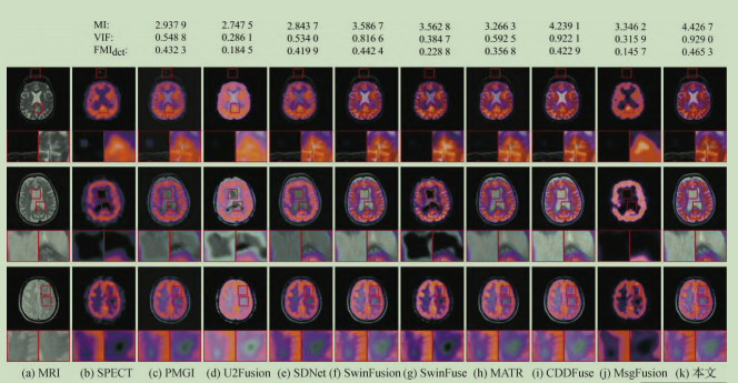 本文方法与其他8种方法在MRI和SPECT图像上的比较: