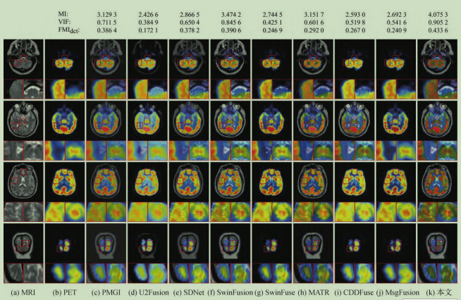 本文方法与其他8种方法在MRI和PET图像上的比较: