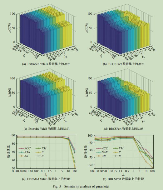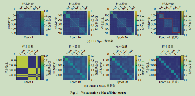 本文提出了一种新的面向子空间聚类的多视图统一表示学习网络(multi-view unified representationlearning network,MURLN).在多视图特征提取方面,结合自注意力机制以及多视图学习的特点,提出基于Transformer的多视图共享编码框架学习每个视图的潜在表示,同时施加多样性约束以挖掘视图间的互补信息.编码框架以共享参数的形式进行训练,提高了模型的泛化能力.在多视图特征融合方面,考虑到同一个观测样本在不同视图中的不同聚类表现,将多视图融合的目标粒度从整个视图细化到视图内样本,提出一种样本加权的融合方法来从低维潜在空间中构建统一表示.通过迭代优化模型参数,自适应地学习视图中每个样本的合适权重。最后,为追求子空间表示的低秩性,设计基于加权Schatten-p范数[24]的正则化约束,提高自表示系数矩阵学习的质量。在多个公开数据集上的大量实验证明了所提方法的有效性和优越性。